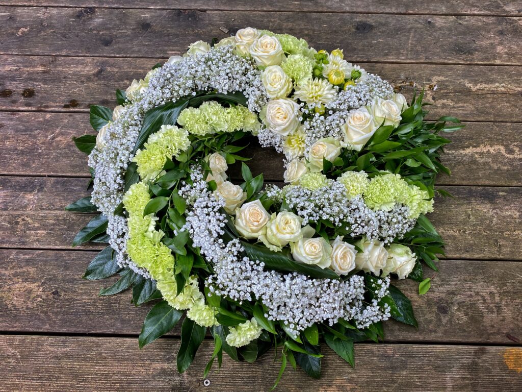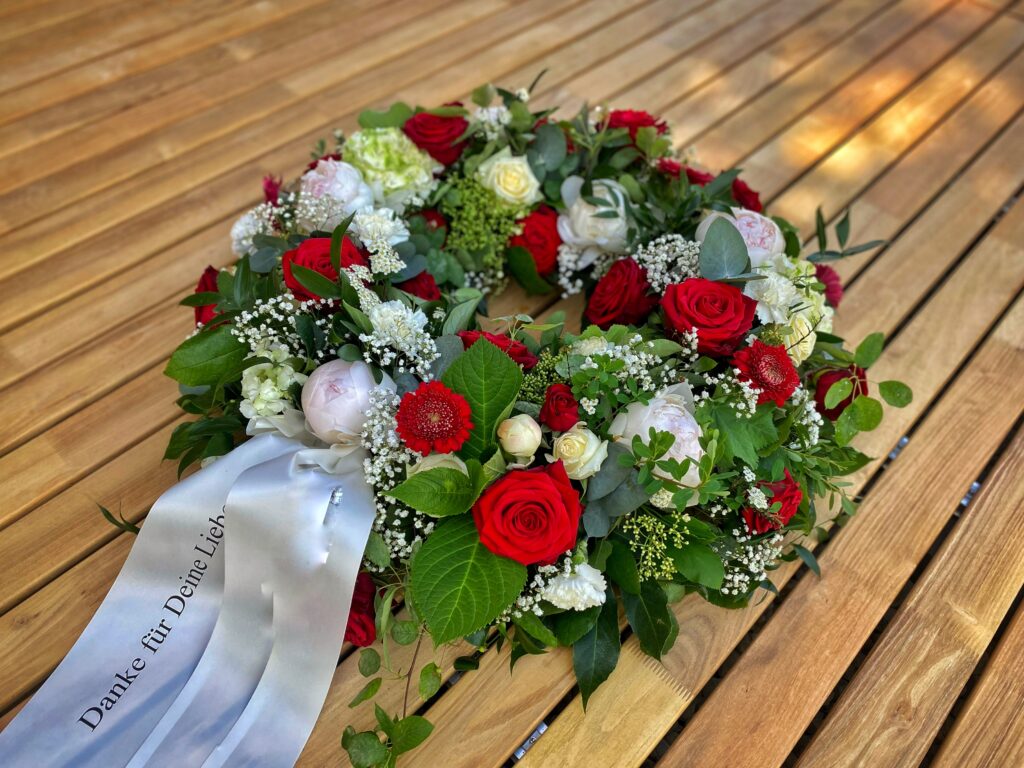 Die Trauer- und Grabfloristik hat besondere Anforderungen. Kränze und Sträuße müssen den Witterungsbedingungen standhalten. Für die Beerdigung oder die Grabpflege bieten wir Ihnen professionell gefertigte Grabfloristik an. Dabei gehen wir im persönlichen Gespräch auf Ihre Wünsche ein und dekorieren Trauerkranz und Grabschmuck ganz nach Ihren Wünschen.